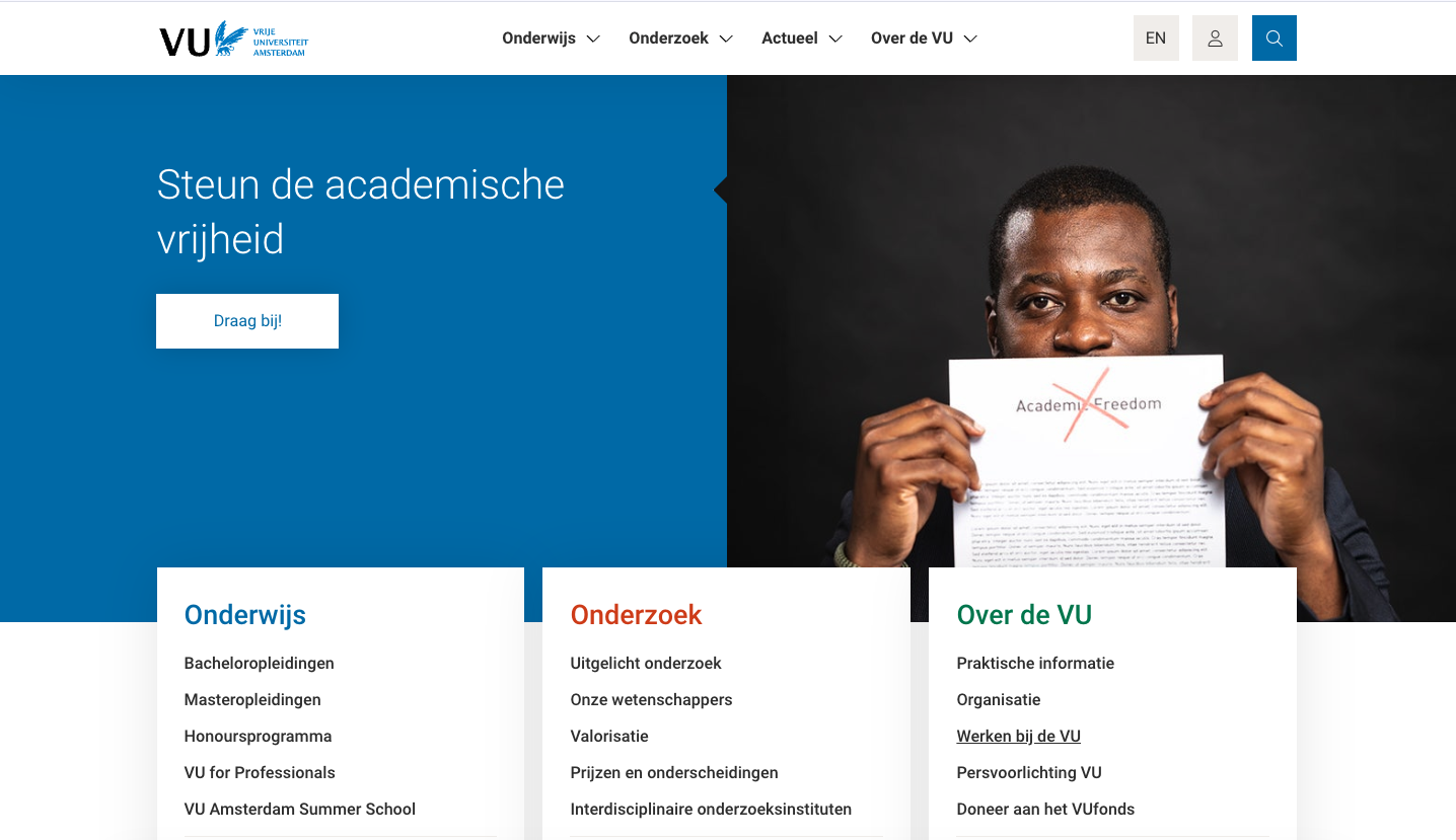 Copywriting voor de website van de VU
